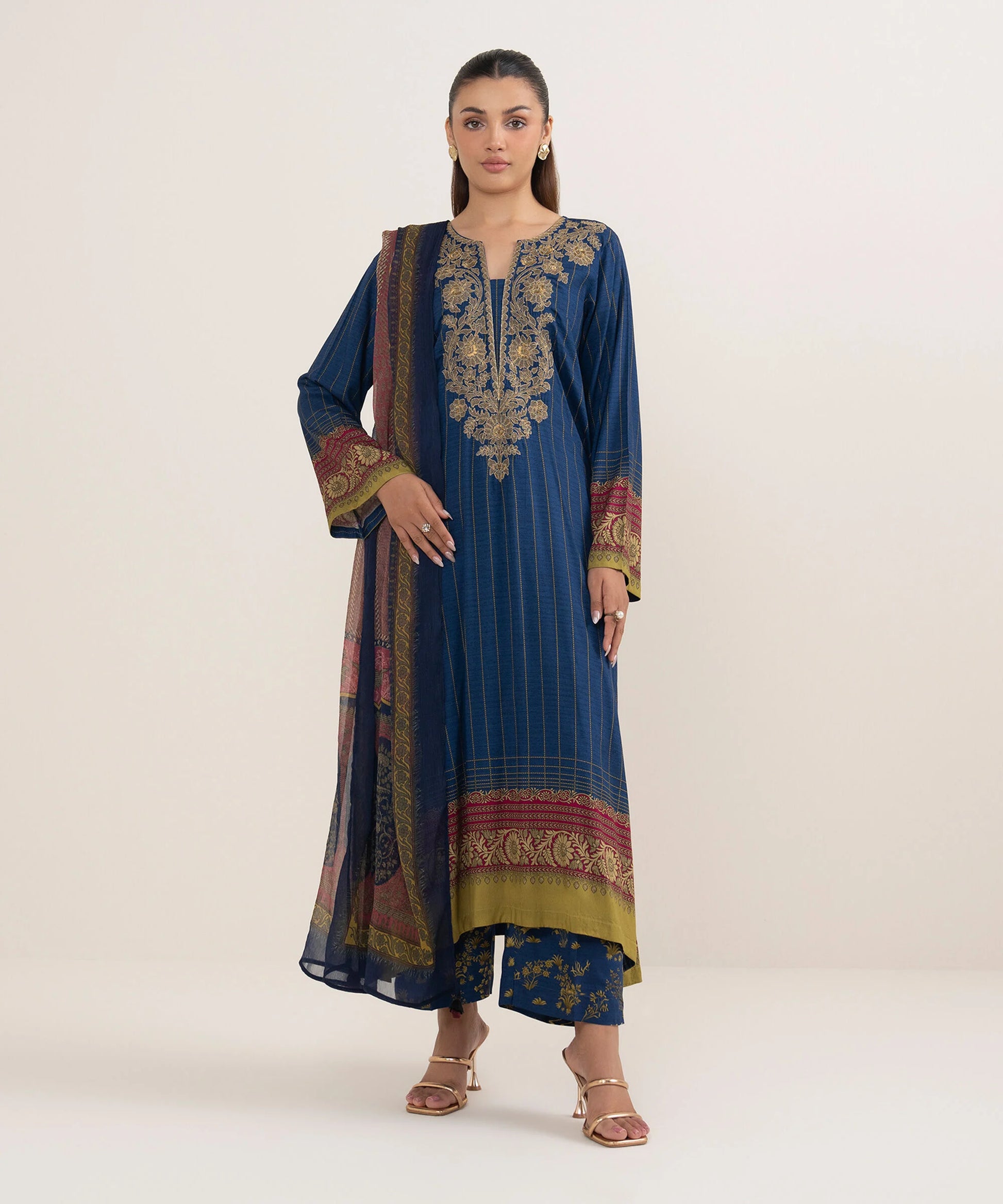 Printed With Tilla Embroidered Front Panel, Printed Back Panel, Round With A Slit Neckline, Full Sleeves, Long Length